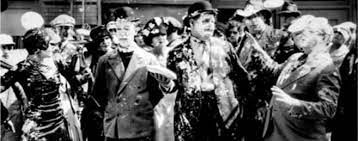 About 11 minutes into this classic Laurel and Hardy short, a pastry chef slips on a banana peel, blames Hardy, and hits him in the kisser with a pie. Hardy retaliates, but misses the chef and accidentally hits a refined woman on her behind. She returns fire but likewise misses, hitting a man getting his shoes shined. And thus begins the greatest pie fight—a reported 3,000 pies were used— in movie history.