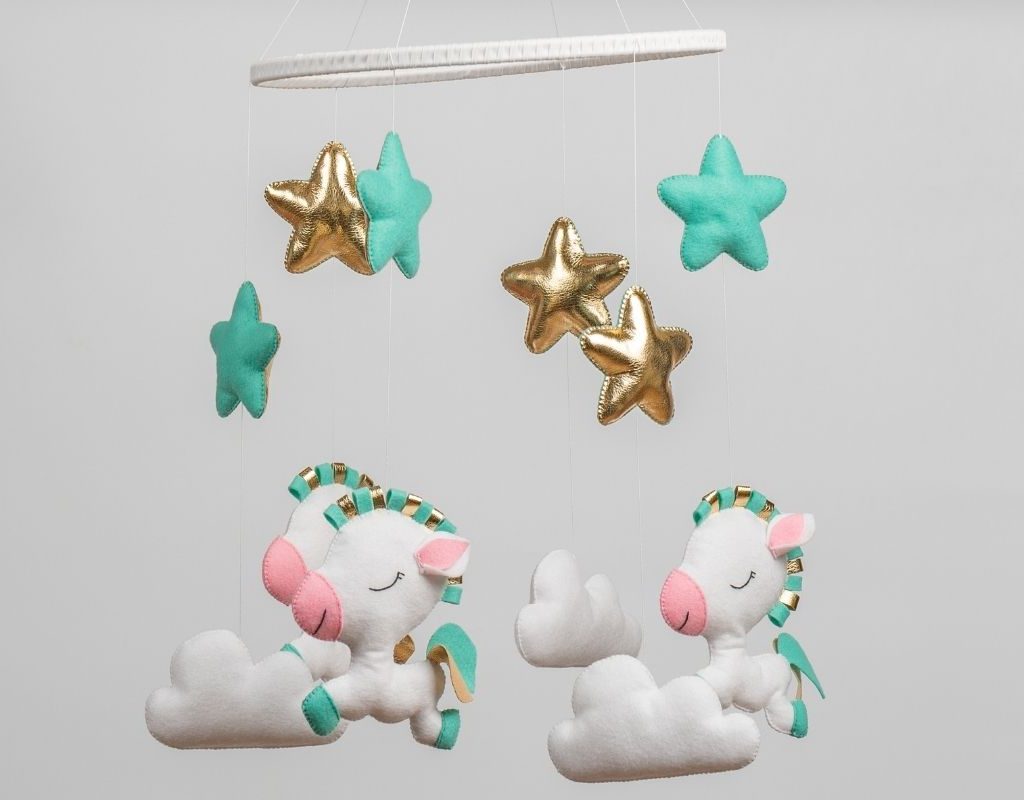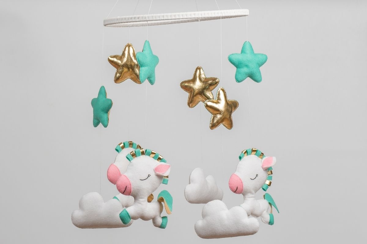 Crib mobiles are one of the most personal elements of any nursery. They are often a statement piece where everything else is furniture or functional, and they don’t take up any coveted floor space or even wall space. Your baby will love looking up at the dancing elements of whatever unique baby mobile you come up with.