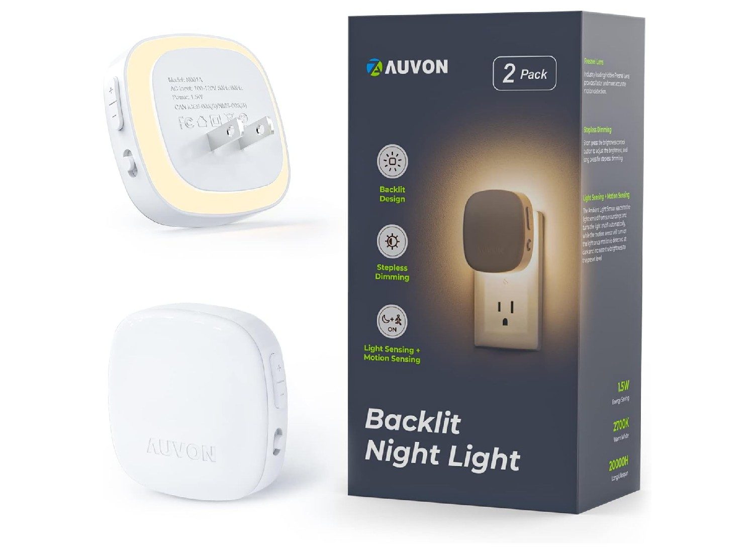 The AUVON Plug-in LED Nightlight is designed to provide gentle illumination and enhance your nighttime experience. Its innovative diffuse backlit design features 16 LED bulbs, ensuring uniform luminescence that softly reflects onto the wall, avoiding any discomfort from direct light into your eyes. Ideal for those sensitive to light or prone to insomnia, this nightlight offers a soothing solution.