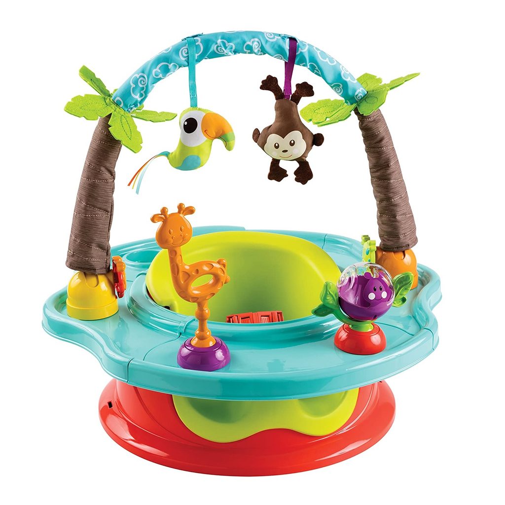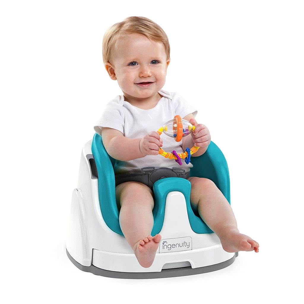 Get more bang for your baby-floor-seat buck with a highly versatile one. The Ingenuity Baby Base 2-in-1 Seat fits that description well by converting from a baby booster to a toddler seat. Usable from age 6 months on, the baby floor seat includes a removable tray that stores under the booster seat, making it a good mealtime asset.